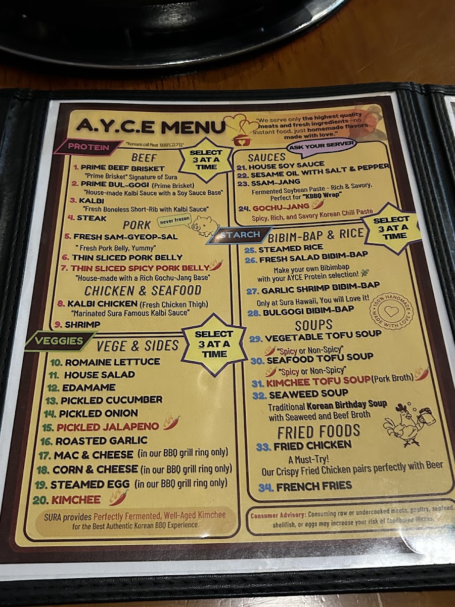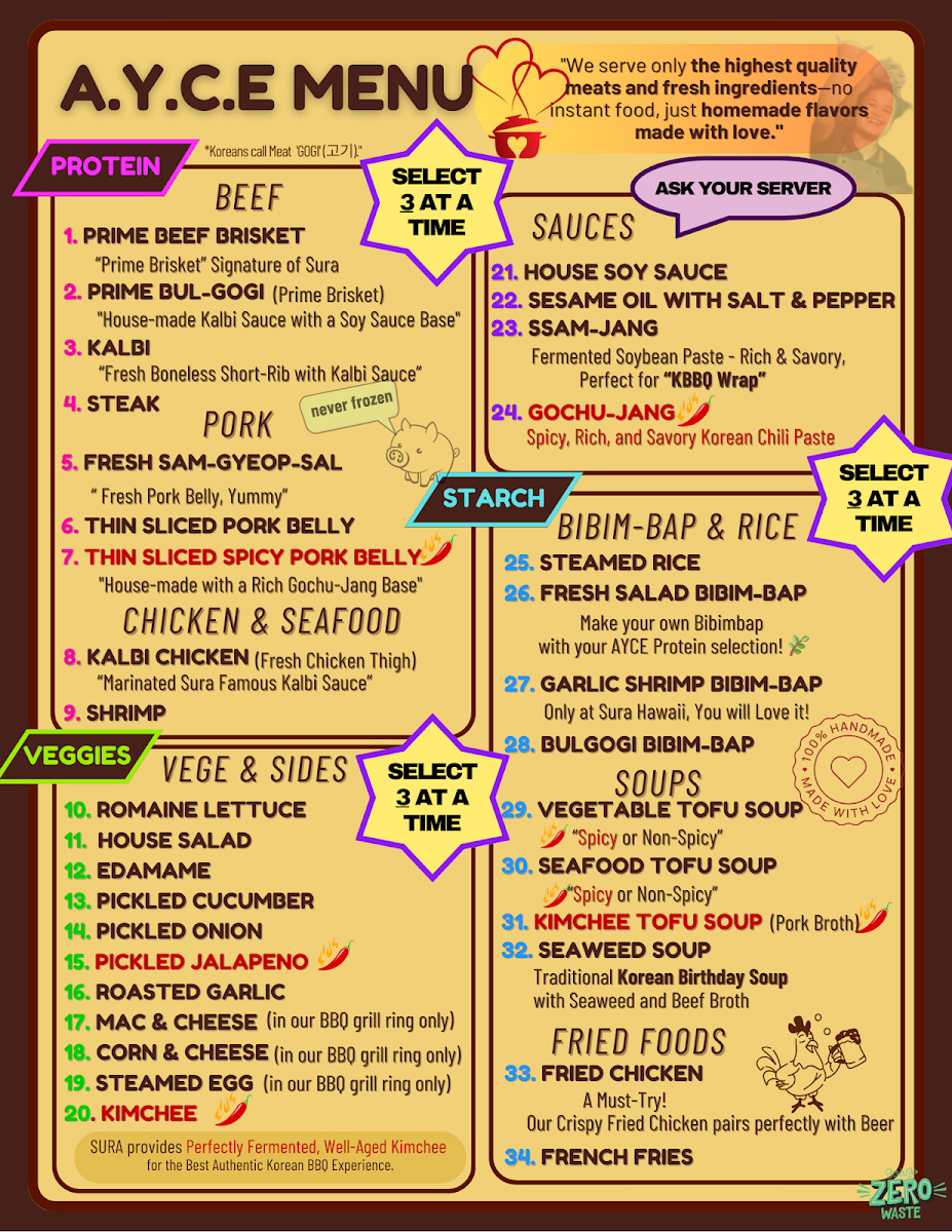 The reviews from satisfied customers attest to Sura's quality. One customer raves about the “great lunch deal with a large selection of foods” and praises the exceptional service. Another mentions the “solid all-you-can-eat spot with good quality meats,” while comments express appreciation for late-night dining options and discounts available for students. However, some have mentioned minor critiques, such as timing for meat refills and menu updates, highlighting the importance of continuous improvement.