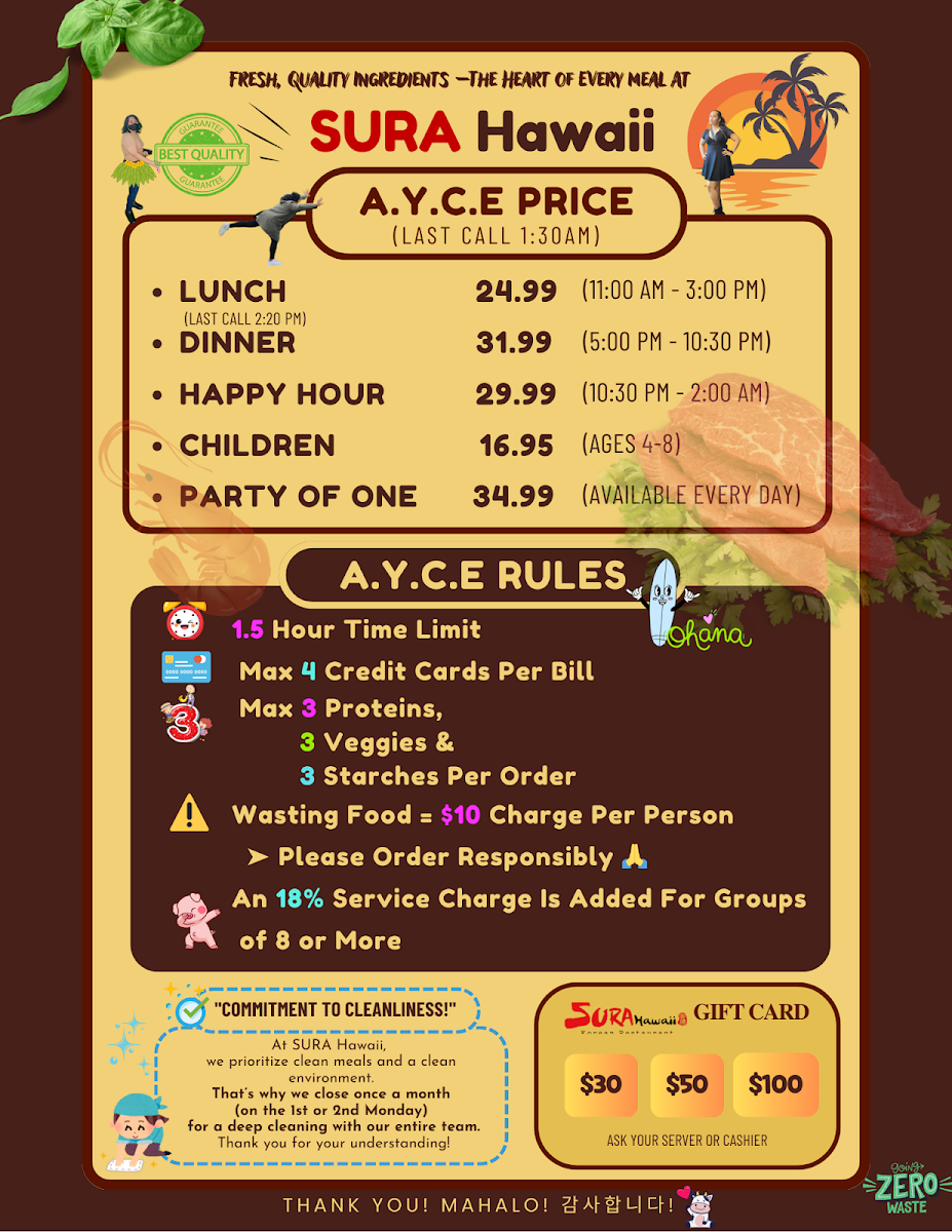 Welcome to Sura Hawaii, a delightful Korean barbecue restaurant located conveniently at 1726 Kapiolani Blvd #101 in the heart of Honolulu. This culinary gem captures the essence of authentic Korean cuisine while offering a unique dining experience that’s perfect for both locals and visitors alike.
